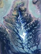 I create abstract art and custom artwork using acrylic paint, resin, preserved moss, glass, paint additives, wood, a blank canvas, and an open mind. The #1 thing for any artist. And let me not forget to add the company of my two pups by my side in my art studio every time I create.